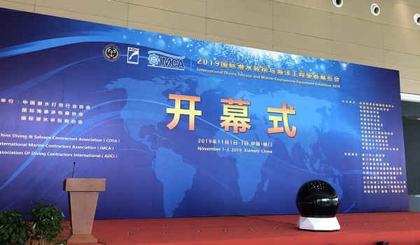 2019年11月1日-3日,经国家商务部批准,中国潜水打捞行业协会(CDSA)再次携手国际潜水承包商协会(ADCI)、国际海事承包商协会(IMCA)联合主办的“2019国际潜水救捞与海洋工程装备展览会”在厦门佰翔会展中心举行。本届国际展会吸引了来自世界各地行业内实力展商参展,展商领域覆盖工程承包商、设备供应商、服务提供商及其他配套供应商、专业科研机构及培训机构等。在超过10000平方米的展厅中,100余家企业参展,通过300余个展位展示几百余种高端潜水打捞及海洋工程装备。
